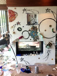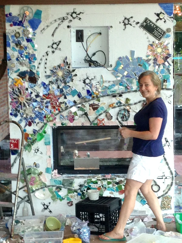 The mosaic is being constructed by the well-practiced hands of Cathleen Newman and Claudia Schuttman of Modern Mosaic Arts. Thank you, Modern Mosaic Arts!