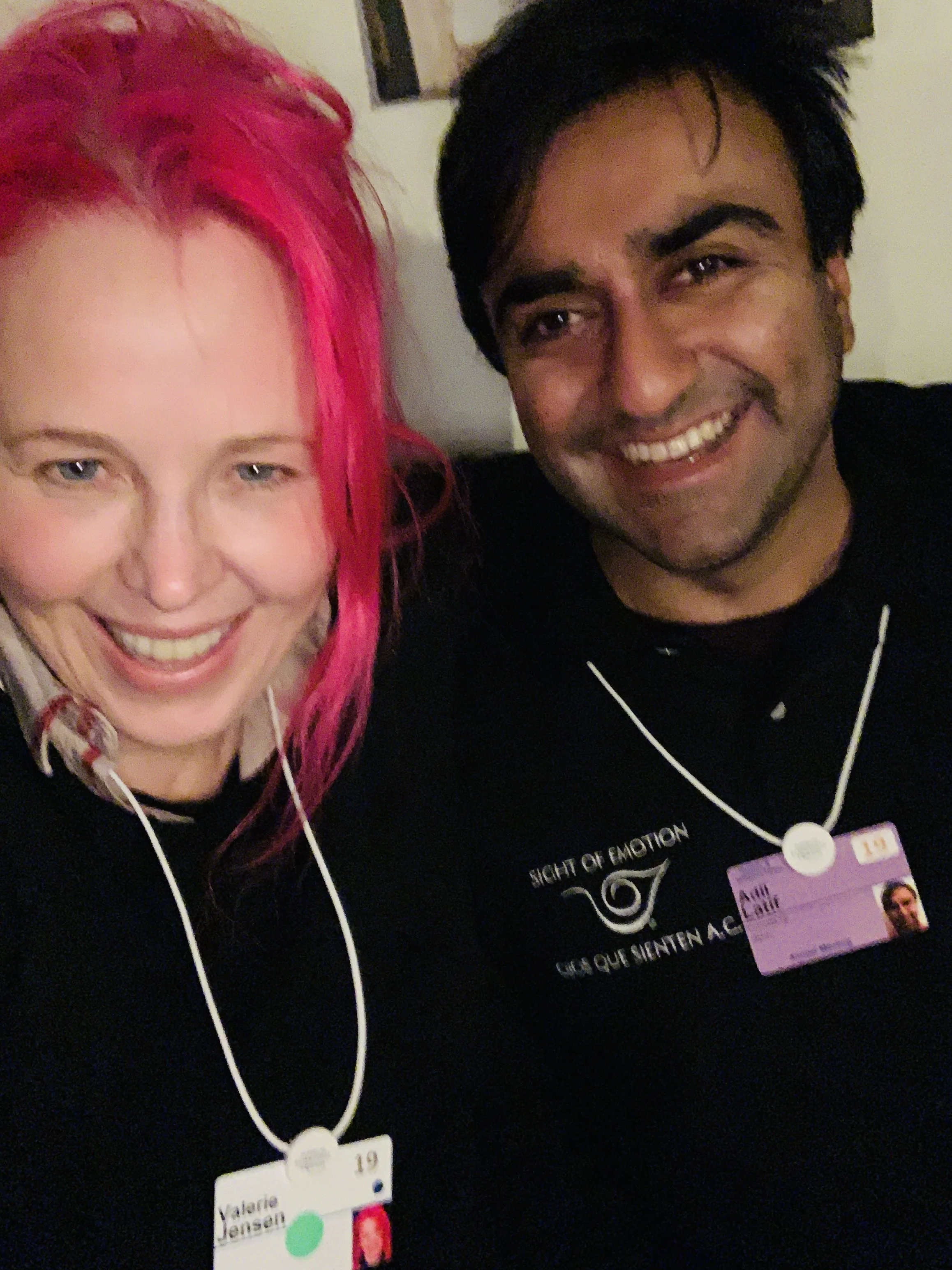 These leaders/servers had led our groups and had a level of empathy in their interaction with us that I don’t believe can be taught. They had our trust from the first step to the last. I saw what they saw. They knew it was hard for us and wanted to make it better. The small gestures, a warm hand on our shoulder, a “Val, are you ok over there?" or "Greg are you still here?" was very comforting and reassuring. The group of leaders were introduced to us one by one. They were from countries all over the world and had come together at the World Economic Forum to create this interactive, engaging sensory experience.